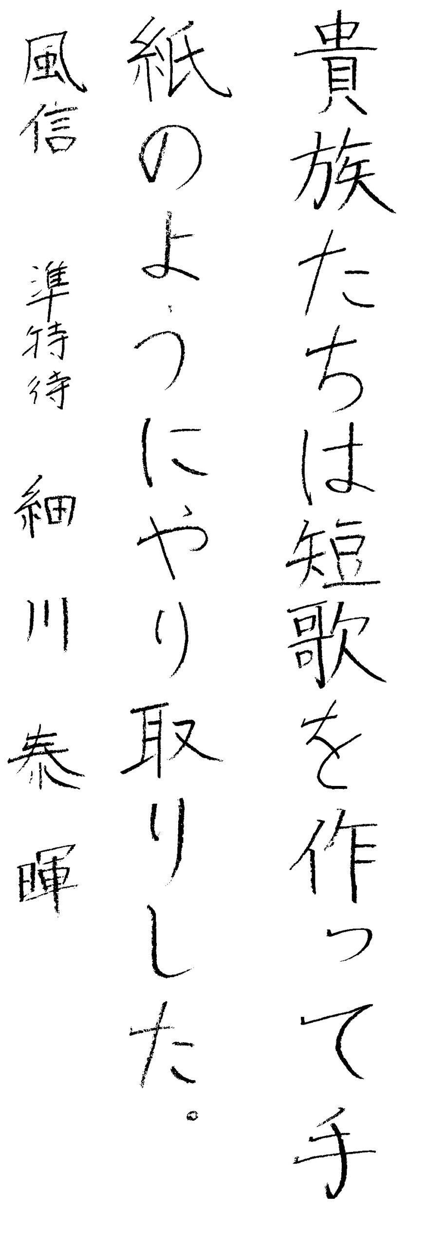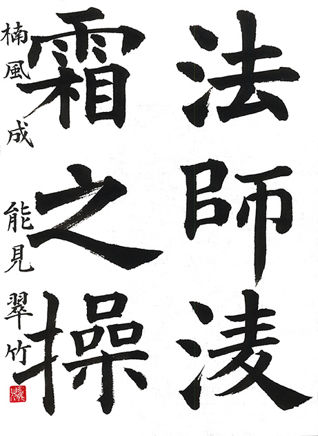 「⾵信」は空海(弘法⼤師)が最澄に宛てた⼿紙の冒頭「⾵信(⾵の便りの意)」を頂いて命名したものです。空海のような⽴派な⼈に、また、書の巧みな⼈になろうという願いがこもっています。